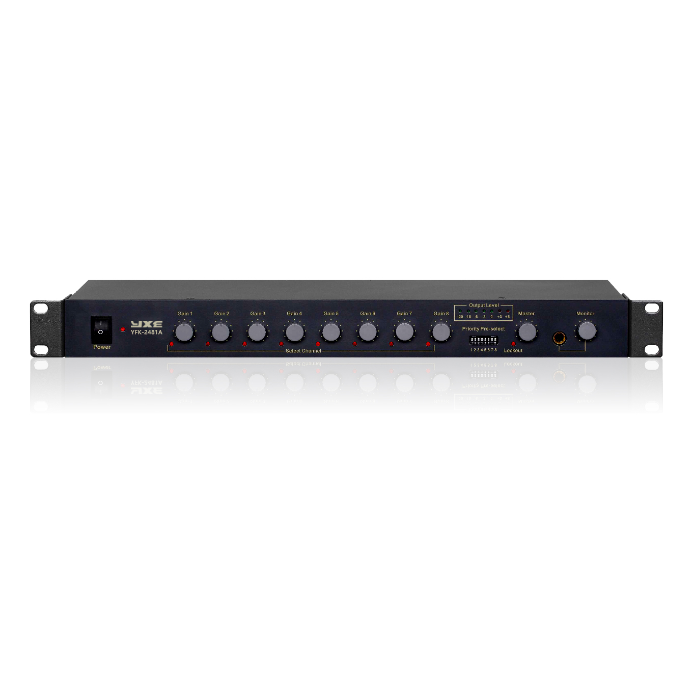 8路輸入數(shù)字移頻混音器; 2. 超強(qiáng)防嘯叫性能,有效防止話筒嘯叫產(chǎn)生,大幅度提示會議現(xiàn)場擴(kuò)聲質(zhì)量; 3. 直接接駁普通功率放大器即可使用,無須調(diào)音臺,亦可對調(diào)音臺路數(shù)進(jìn)行擴(kuò)展; 4. 可多臺并機(jī)使用,滿足大型討論會議系統(tǒng)要求; 5. 具備+48V幻像供電; |